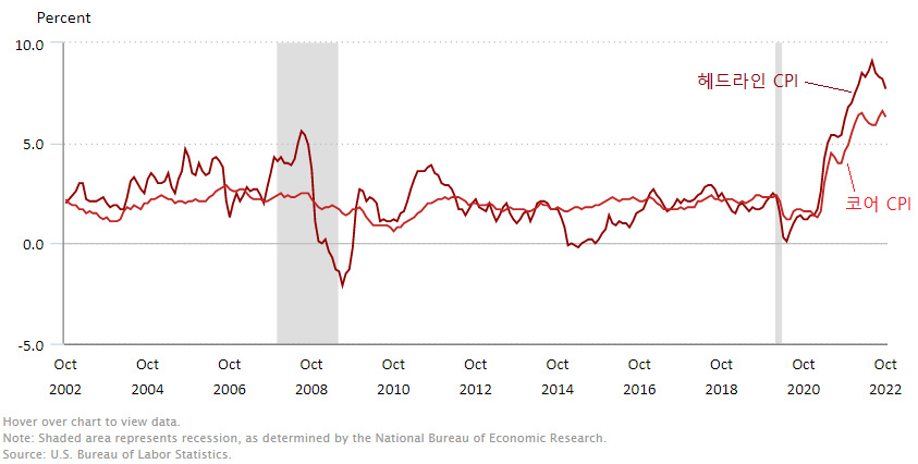 2022년 11월 10일, 미국 노동부에서 예상보다 둔화된 소비자물가지수를 발표한 후, 연준(FED)의 금리 정책 변화에 대한 시장의 기대감을 반영한 나스닥지수는 하루새 7% 이상 폭등하였다.
