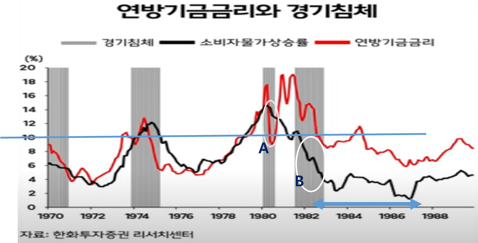 A국면이 금리를 19%까지 올렸다가 8%로 내린 시점이다.