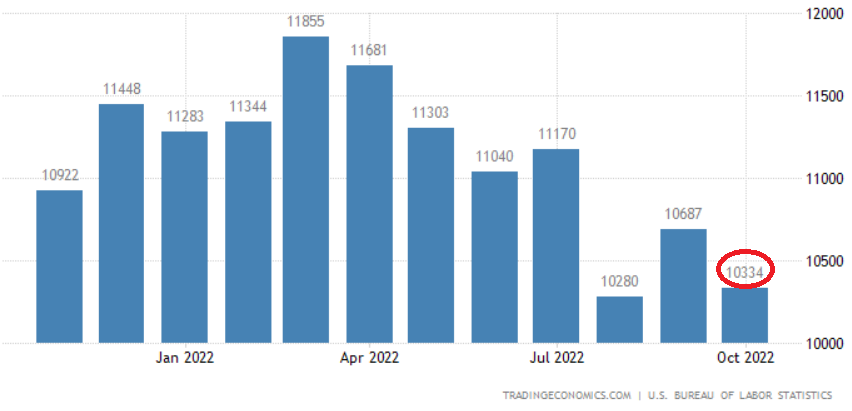 지난 11월 한 달 구인 건수(Job Openings) : 1045.8만 건